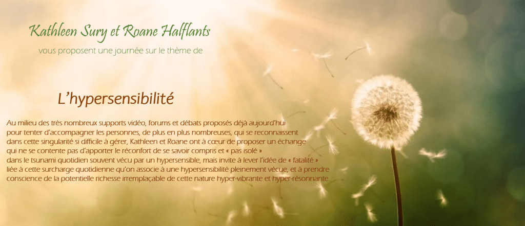 Au milieu des très nombreux supports vidéo, forums et débats proposés déjà aujourd’hui pour tenter d’accompagner les personnes, de plus en plus nombreuses, qui se reconnaissent dans cette singularité si difficile à gérer, mon mari Roane et moi avons à cœur de proposer un échange qui ne se contente pas d’apporter le réconfort de se savoir compris et « pas isolé » dans le tsunami quotidien souvent vécu par un hypersensible, mais invite à lever l’idée de « fatalité » liée à cette surcharge quotidienne qu’on associe à une hypersensibilité pleinement vécue, et à prendre conscience de la potentielle richesse irremplaçable de cette nature hyper-vibrante et hyper-résonnante.